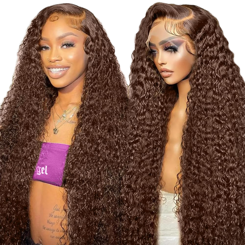 Peluca con malla frontal marrón chocolate de 30 pulgadas, cabello humano Remy, densidad 200, 13x6 HD, adhesivo sin pegamento de onda profunda, cabello europeo para mujeres